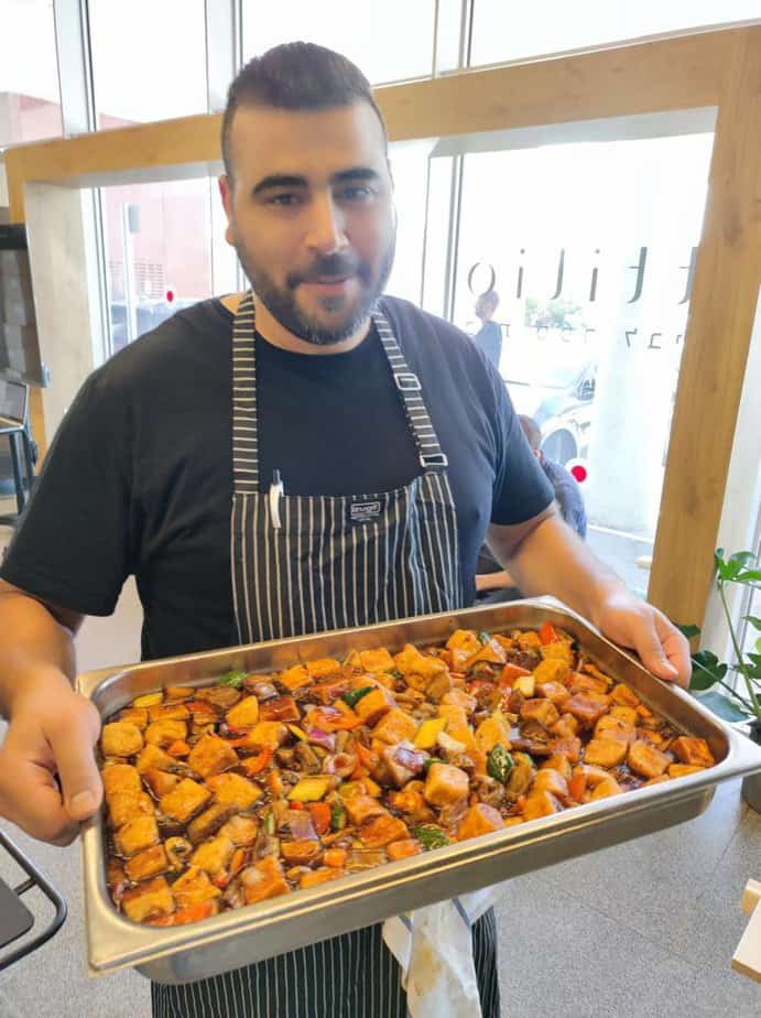 "ביחד עם משוה כמו 50 מתנדבים שבאים כל יום, אנחנו מוציאים 2,000 ארוחות חמות שנתרמות לכל מי שצריך בתקופה זו".