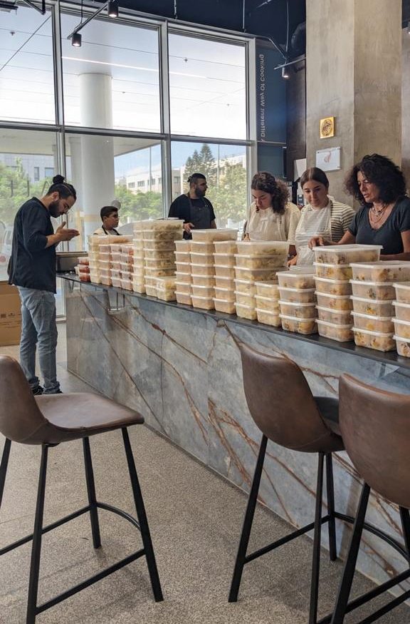 "גם התלמידים אבל לא בעיקר. חלק מהתלמידים שלנו גויסו, או לצערנו גם חלק ממשפחות שכולות. אבל הרבה שפים התגייסו למשימה. מי שמנהל את המטבח אצלנו במטבח זה השף אסף שטרן ממסעדת 'מסה'. יחד עם עוד 12 שפים מהתעשייה, כולם עזבו עסקים ובאו לבשל אצלנו בהתנדבות.
