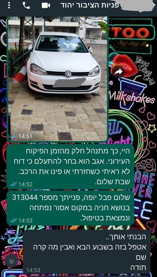 מעיריית יהוד-מונוסון נמסר: "האכיפה על חוקי התנועה והחנייה מסורה בידי אגף ביטחון, חירום ואכיפה ומשטרת ישראל, לצד זאת קיימת על כל תושב ותושבת האחריות האישית לקיים את הוראות החוק ולא להפריע לתנועה, לסביבה ולכלל התושבים.