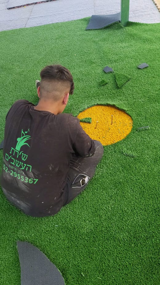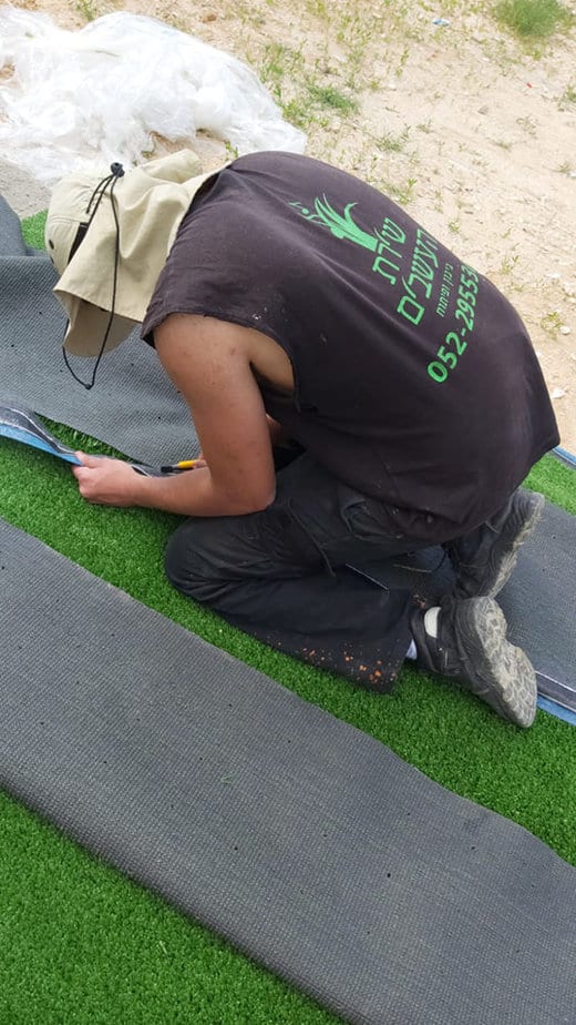 התקנת דשא סינטטי בחצר. צילום באדיבות שירת העשבים